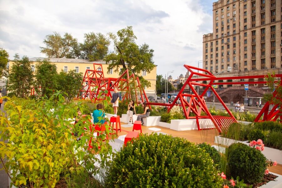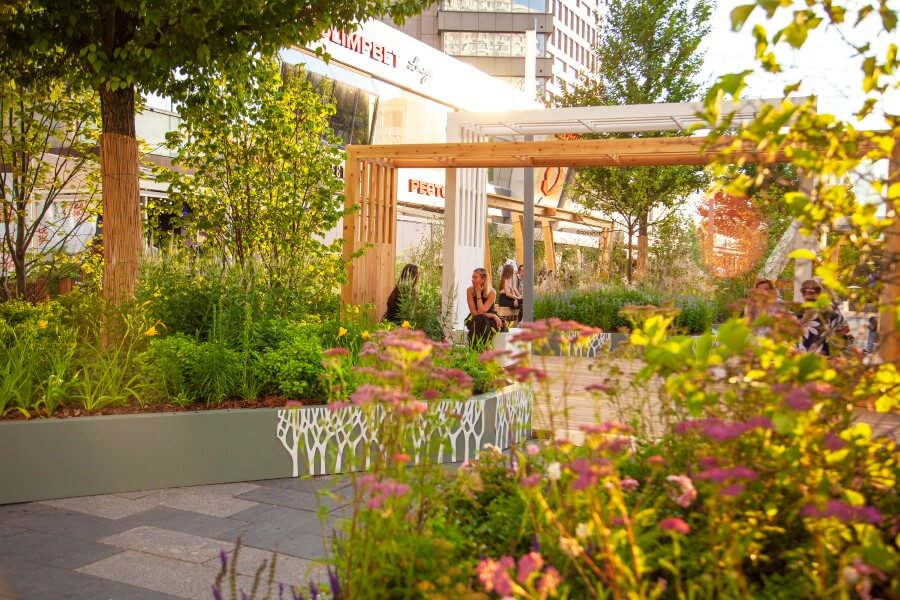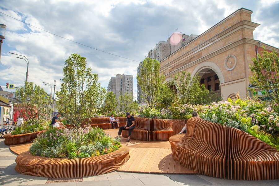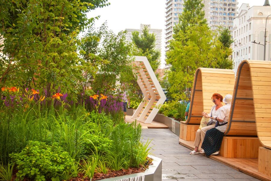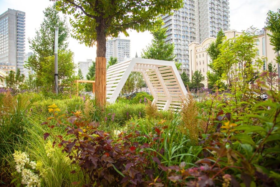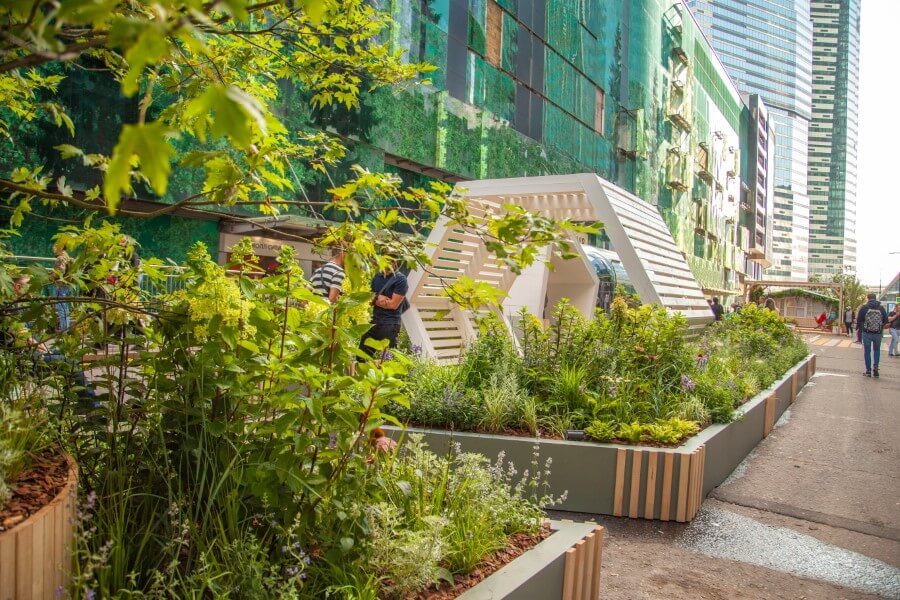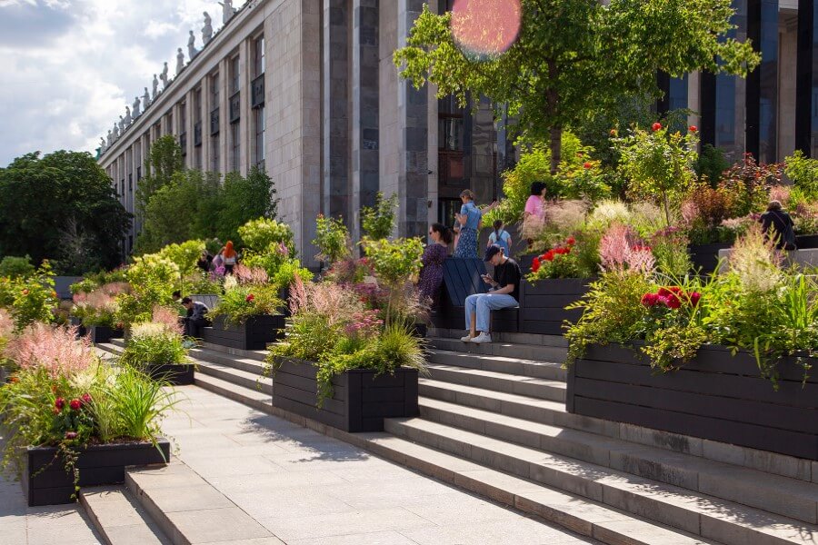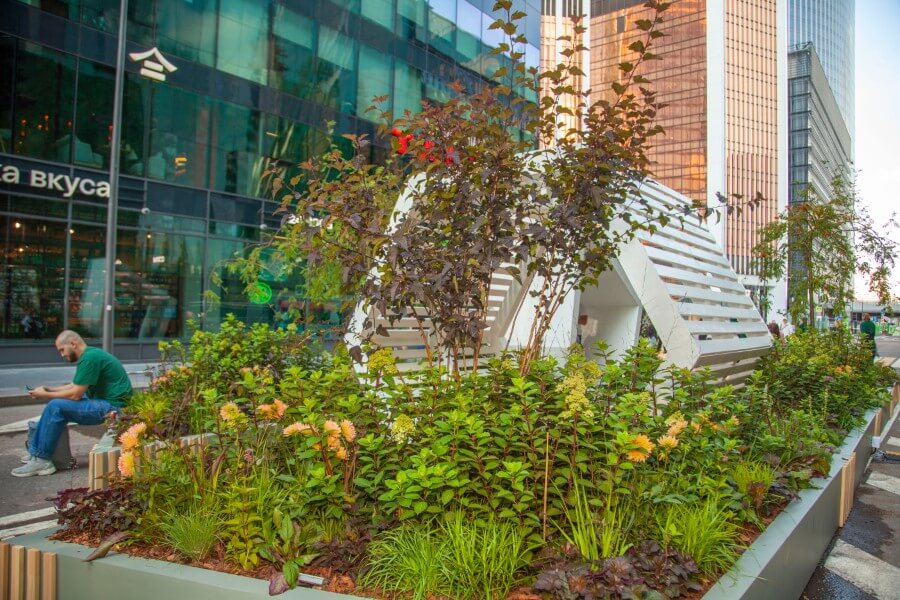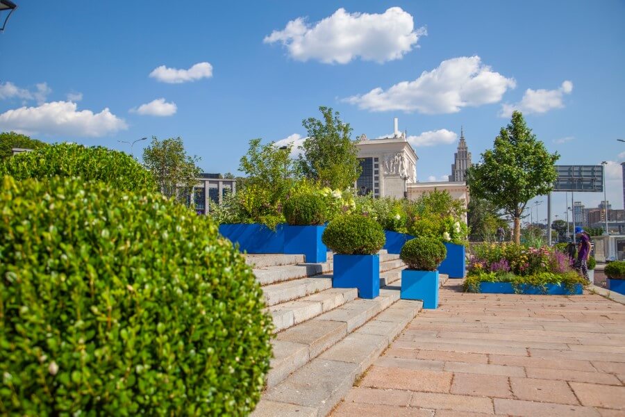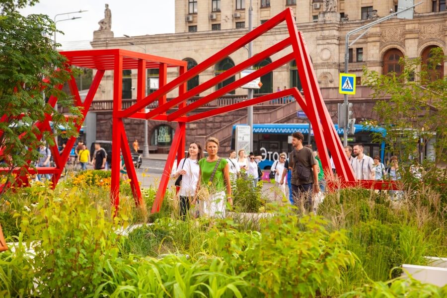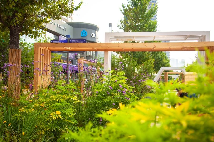 Цветущие сады, модули и арт-объекты устанавливают в парках и на пешеходных маршрутах, на мостах и возле станций